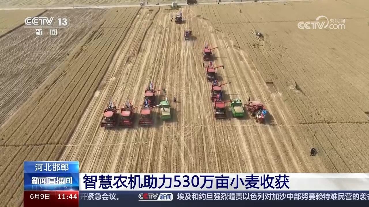 眼下,在河北邯鄲臨漳縣,小麥聯(lián)合收割機正在麥田里來回穿梭。今年邯鄲市組織使用了裝有北斗導(dǎo)航的新型智慧農(nóng)機,不僅可以實現(xiàn)自動行走直線、割臺隨著地形起伏自動調(diào)整,減少漏撒麥粒損失,還可以隨機進行測產(chǎn)。據(jù)了解,在新型智慧農(nóng)機的助力下,邯鄲市530多萬畝小麥將在6月12日前后完成收割任務(wù),6月20日前完成夏玉米播種任務(wù),為秋糧的豐收打下良好基礎(chǔ)。