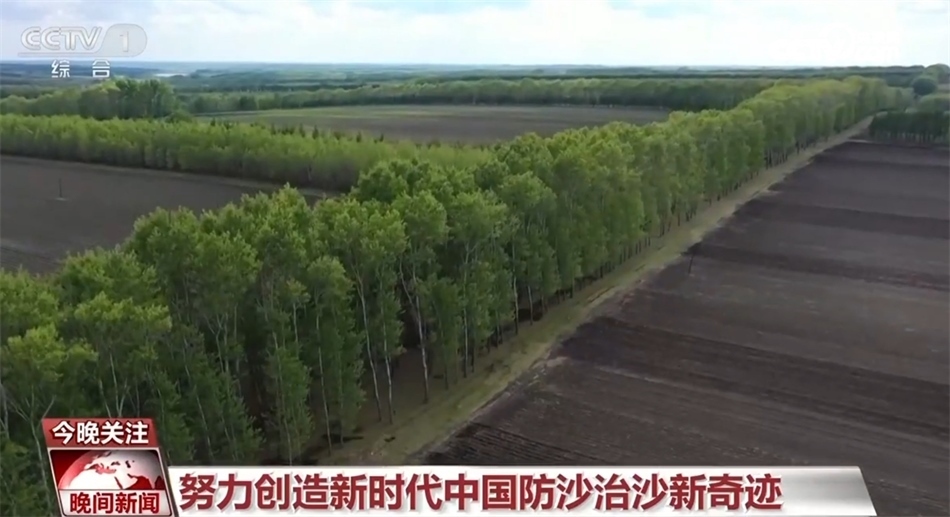 “三北”工程攻堅戰(zhàn)全面打響一年來,已完成造林種草約4000萬畝,三大標(biāo)志性戰(zhàn)役取得良好開局。在黃河“幾字彎”攻堅戰(zhàn)中,我們看到,在鎖邊林和穿沙公路的共同作用下,庫布齊沙漠停止了向黃河擴(kuò)張的腳步。在河西走廊—塔克拉瑪干沙漠邊緣阻擊戰(zhàn)中,我們看到,內(nèi)蒙古阿拉善右旗和甘肅民勤縣聯(lián)合治沙,正所謂“兄弟齊心,其利斷金”。在科爾沁、渾善達(dá)克兩大沙地殲滅戰(zhàn)中,新草種為草原修復(fù)帶來綠色希望,農(nóng)防林帶為守護(hù)農(nóng)田筑起綠色長城。而一排排光伏板、一片片特色果林,則是與黃沙博弈中,既要“添綠”又能“生金”的生動寫照。