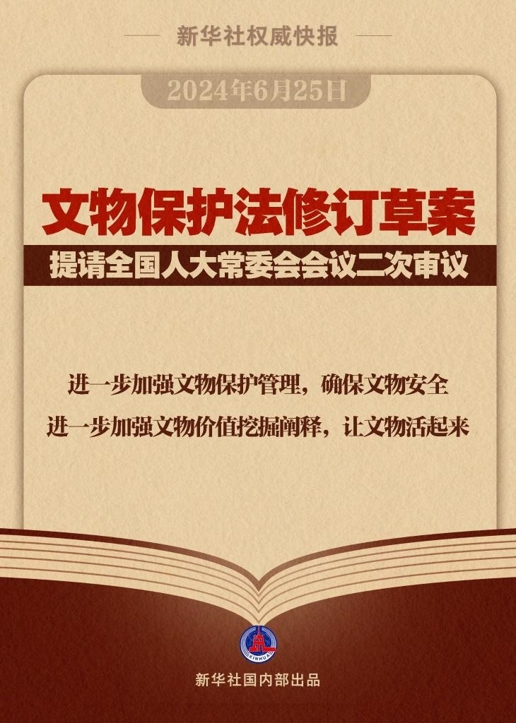 文物保護法修訂草案6月25日提請全國人大常委會會議二次審議。