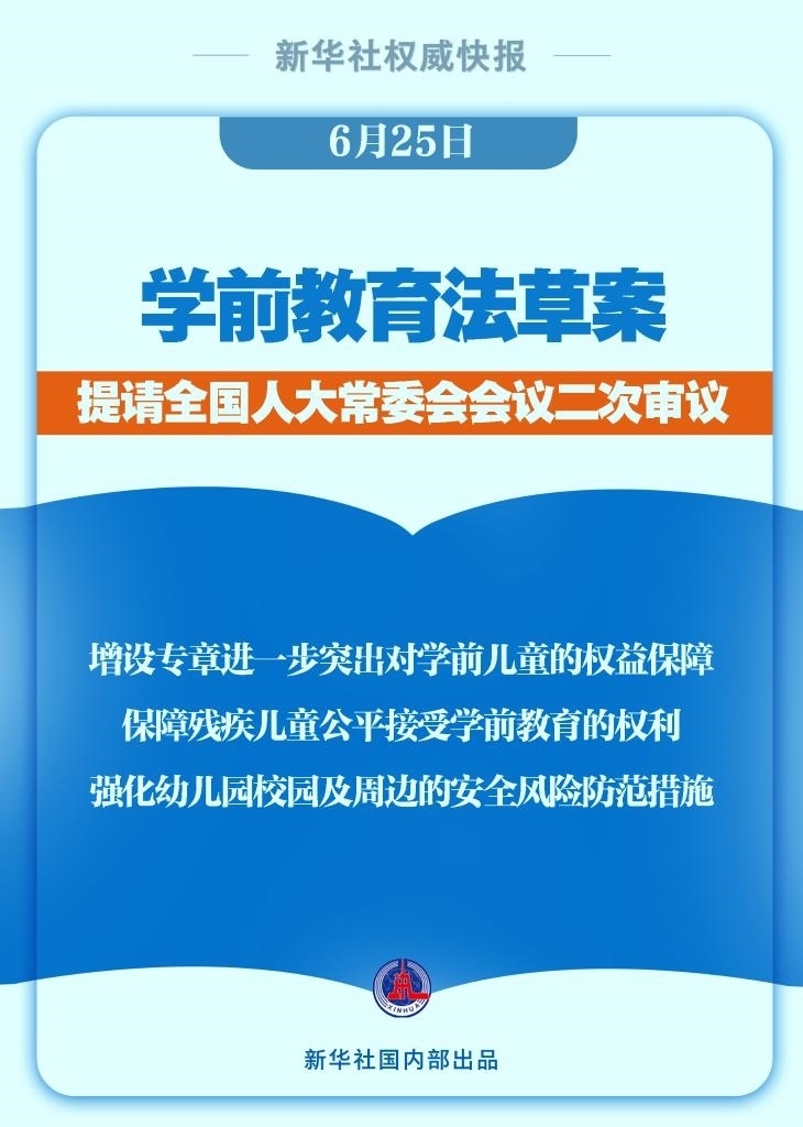 學前教育法草案6月25日提請全國人大常委會會議二次審議。