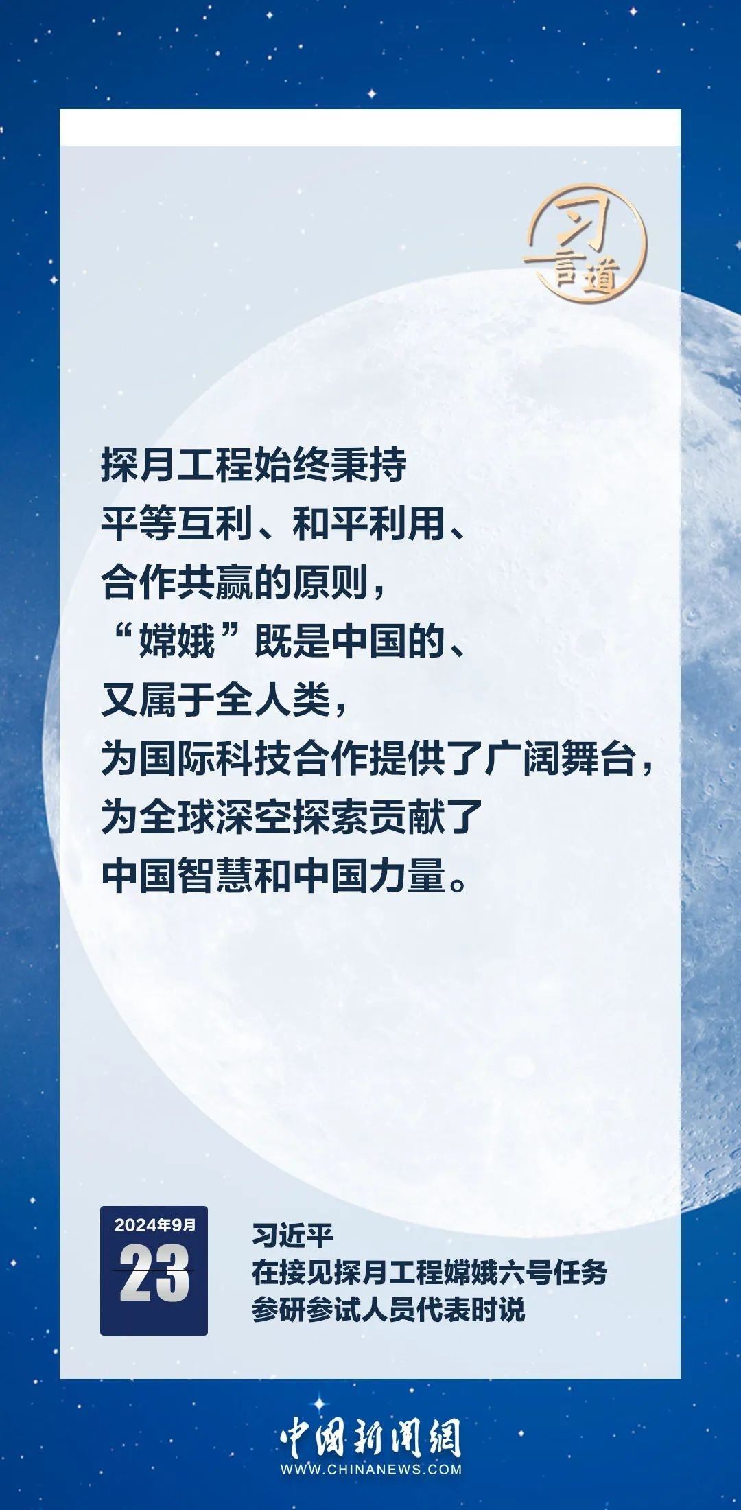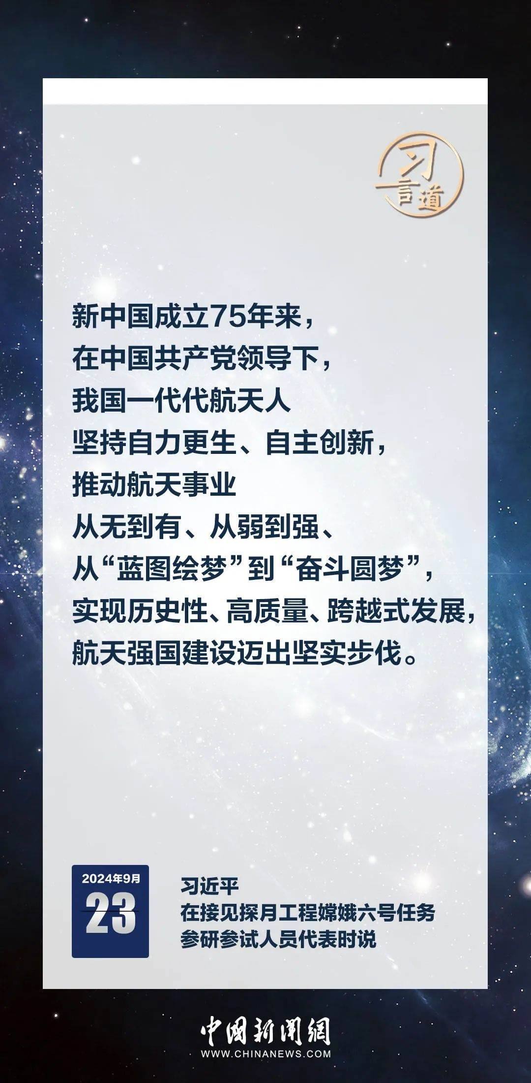 中共中央總書記、國家主席、中央軍委主席習(xí)近平23日在人民大會(huì)堂接見探月工程嫦娥六號(hào)任務(wù)參研參試人員代表時(shí)發(fā)表重要講話。習(xí)近平指出——