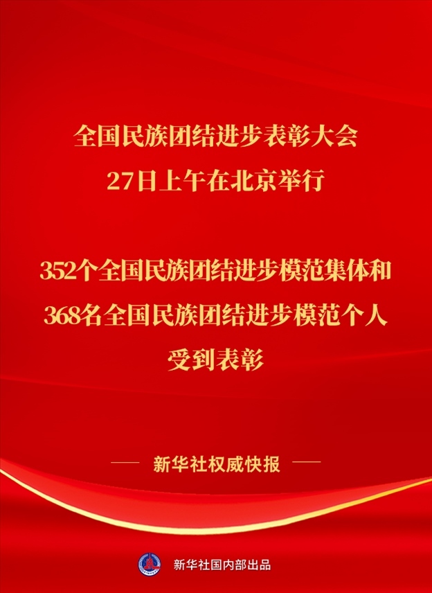 全國民族團結進步表彰大會27日上午在北京舉行。352個全國民族團結進步模范集體和368名全國民族團結進步模范個人受到表彰。各族兒女像石榴籽一樣緊緊抱在一起,推動中華民族成為認同度更高、凝聚力更強的命運共同體。