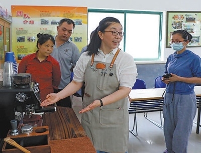 城市治理浦東新區(qū)滬東新村街道壽二就業(yè)服務站,專業(yè)老師為轄區(qū)10多名人員舉辦咖啡技能體驗與培訓活動。李茂君攝(人民視覺)
