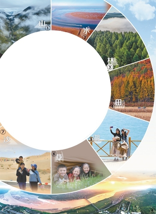 圖①:雨后的武夷山國(guó)家公園云霧繚繞。國(guó)家公園是我國(guó)自然生態(tài)系統(tǒng)中最重要、自然景觀最獨(dú)特、自然遺產(chǎn)最精華、生物多樣性最富集的部分,我國(guó)國(guó)家公園建設(shè)是生態(tài)文明建設(shè)中具有示范引領(lǐng)意義的工程。邱汝泉攝(新華社發(fā))圖②:山東東營(yíng)市紅灘濕地旅游區(qū)生態(tài)濕地,生長(zhǎng)在灘涂上的堿蓬等鹽生植物,如同一塊巨大的紅地毯。劉智峰攝(影像中國(guó))圖③:河北承德市圍場(chǎng)滿族蒙古族自治縣塞罕壩國(guó)家森林公園。組建至今,塞罕壩機(jī)械林場(chǎng)營(yíng)造人工林百萬畝,創(chuàng)造了荒原變林海的奇跡。劉滿倉(cāng)攝(影像中國(guó))圖④:黑龍江雞西密山市黑土地上種植的玉米。近年來,我國(guó)加強(qiáng)黑土地保護(hù),守護(hù)“耕地中的大熊貓”。孫樹寶攝(影像中國(guó))圖⑤:游客在青海湖畔拍照。當(dāng)?shù)亓己玫纳鷳B(tài)環(huán)境和優(yōu)美的景色吸引了來自全國(guó)各地的大量游客。新華社記者 張 龍攝圖⑥:四川甘孜藏族自治州日通草原上,躲在帳篷里的小朋友享受假日生活。我國(guó)持續(xù)推進(jìn)草原生態(tài)保護(hù)修復(fù),穩(wěn)步提升草原生態(tài)功能。新華社記者 江宏景攝圖⑦:新疆博湖縣博斯騰湖畔的艾勒遜烏拉沙漠,游客正帶著孩子在游玩。近年來,我國(guó)推進(jìn)科學(xué)化、規(guī)?;紊常攸c(diǎn)治理區(qū)實(shí)現(xiàn)“沙進(jìn)人退”到“綠進(jìn)沙退”的歷史性轉(zhuǎn)變。年 磊攝(人民視覺)圖⑧:黃河陜西潼關(guān)段景觀。近年來,我國(guó)持續(xù)推動(dòng)黃河流域生態(tài)保護(hù)和高質(zhì)量發(fā)展,流域生態(tài)環(huán)境持續(xù)明顯向好,讓黃河成為造福人民的幸福河。王生暉攝(人民視覺)
