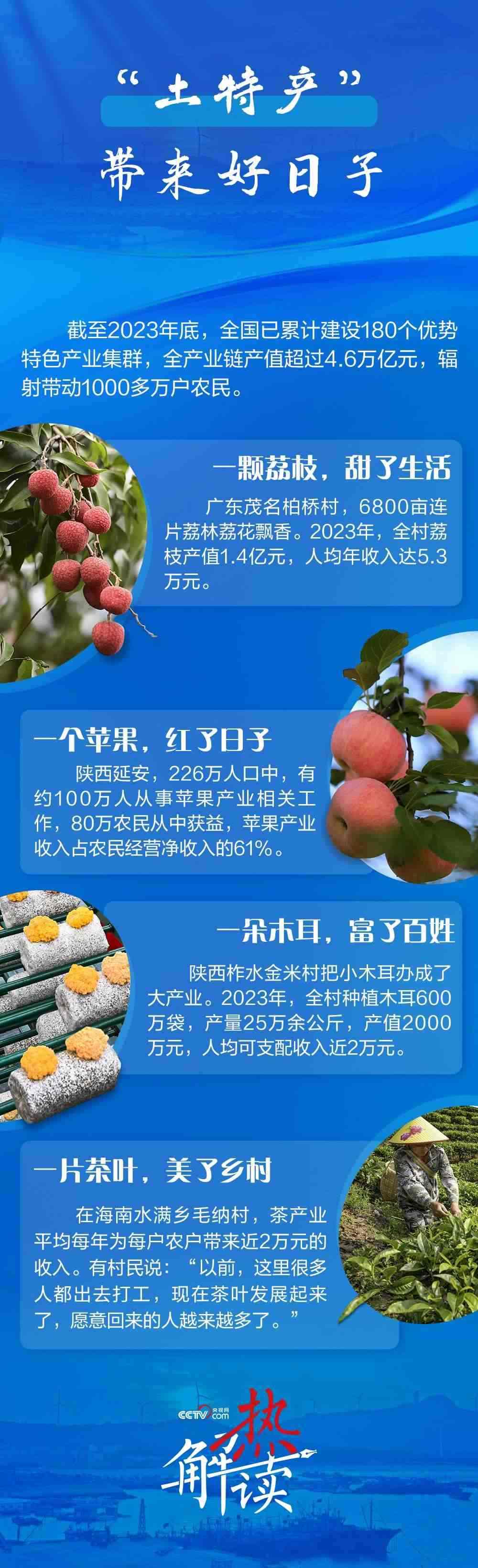 黨的二十屆三中全會通過的《中共中央關于進一步全面深化改革、推進中國式現(xiàn)代化的決定》提出,堅持農(nóng)業(yè)農(nóng)村優(yōu)先發(fā)展,完善鄉(xiāng)村振興投入機制。2024年中央一號文件就“提升鄉(xiāng)村產(chǎn)業(yè)發(fā)展水平”進行專章部署,鼓勵各地因地制宜大力發(fā)展特色產(chǎn)業(yè),支持打造鄉(xiāng)土特色品牌。