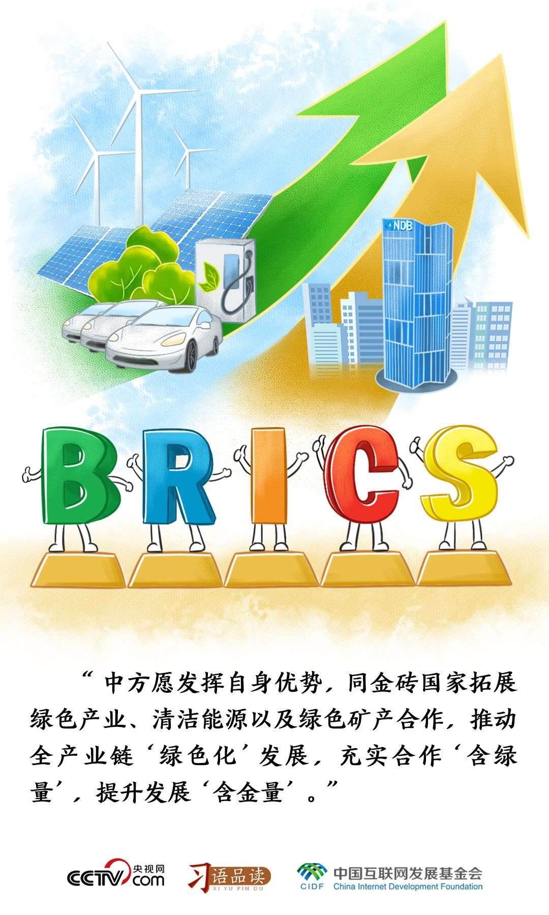 習(xí)主席強調(diào),中方愿同金磚國家拓展綠色產(chǎn)業(yè)、清潔能源以及綠色礦產(chǎn)合作,推動全產(chǎn)業(yè)鏈“綠色化”發(fā)展,充實合作“含綠量”,提升發(fā)展“含金量”。