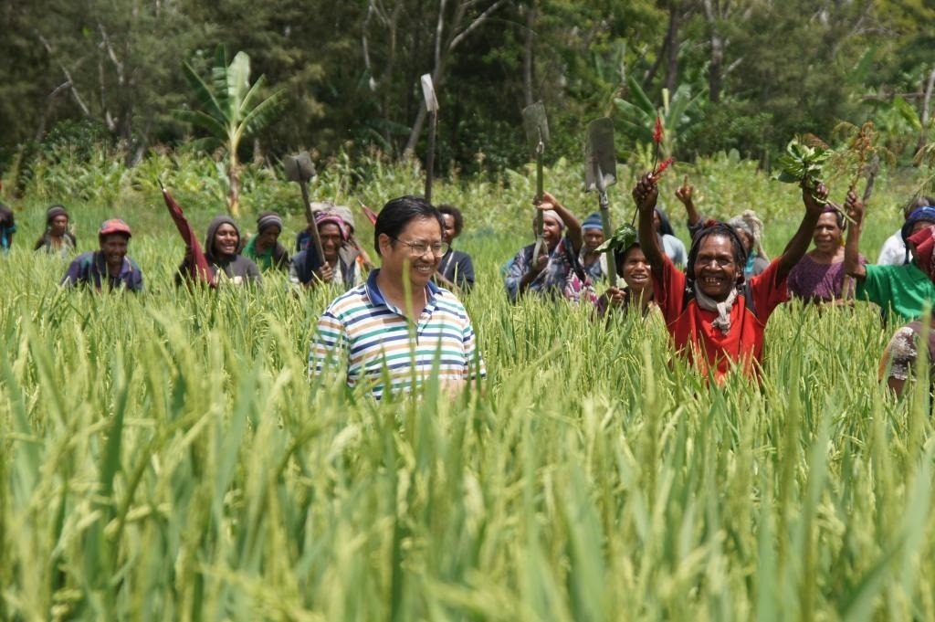 △ 2019年12月17日,首次參與中國援巴新旱稻項(xiàng)目的巴布亞新幾內(nèi)亞農(nóng)戶,看到自己種植的旱稻長勢喜人。