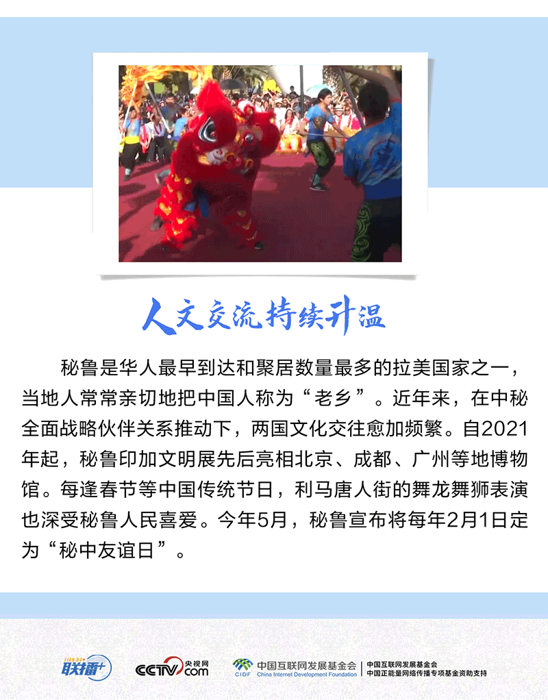 近年來,在雙方共同努力下,中秘各領(lǐng)域合作取得豐碩成果,中秘這對跨洋“友鄰”的“距離”越來越近。央視網(wǎng)《聯(lián)播+》特推出長圖,與您一同了解。