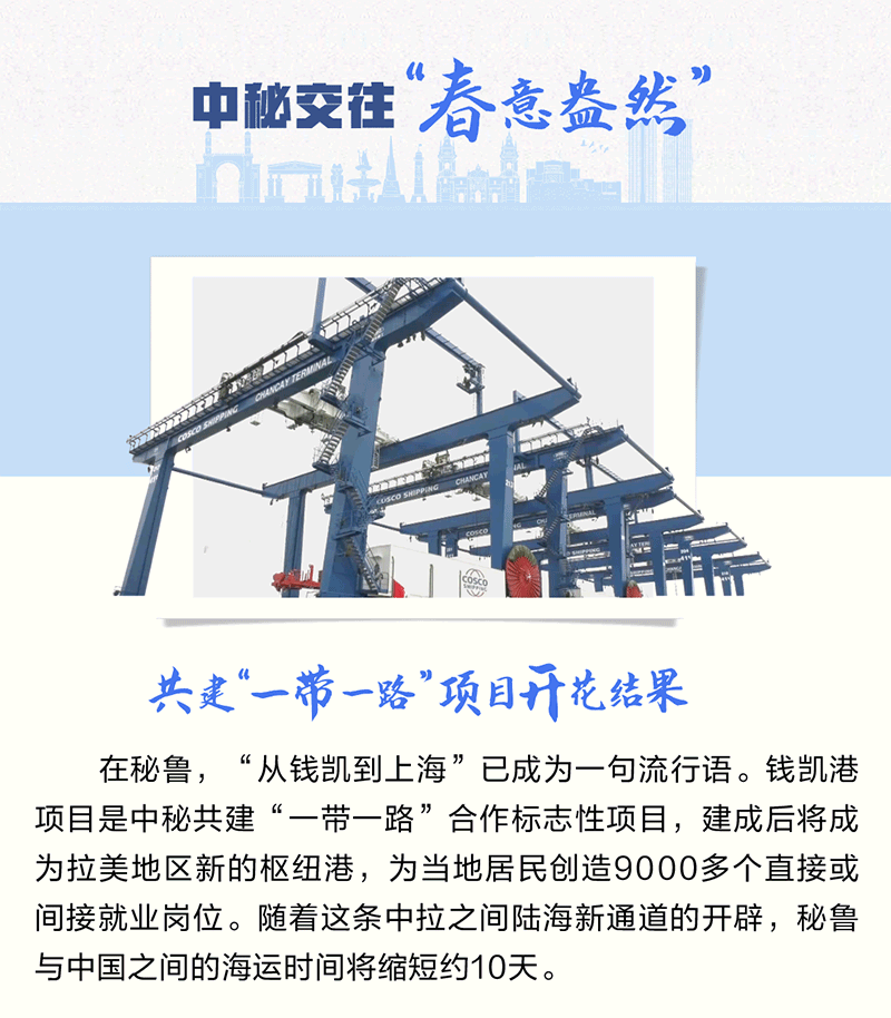 中國和秘魯都是文明古國,兩國友誼源遠(yuǎn)流長,人民友好深入人心。習(xí)近平主席曾以“秘魯是中國在太平洋對岸的‘鄰居’”形容中秘關(guān)系,生動詮釋了兩國和兩國人民之間“相知無遠(yuǎn)近”的深厚友誼。