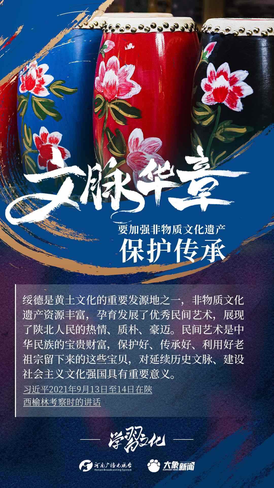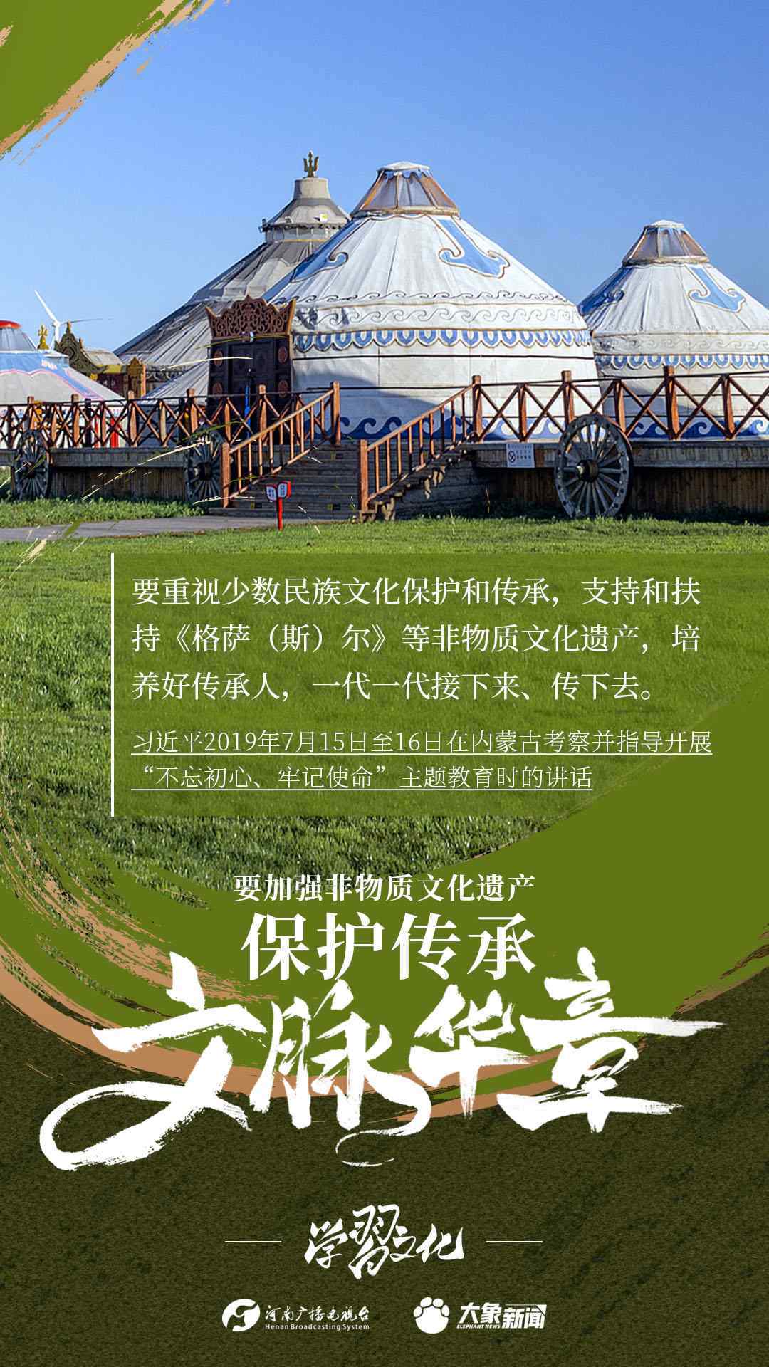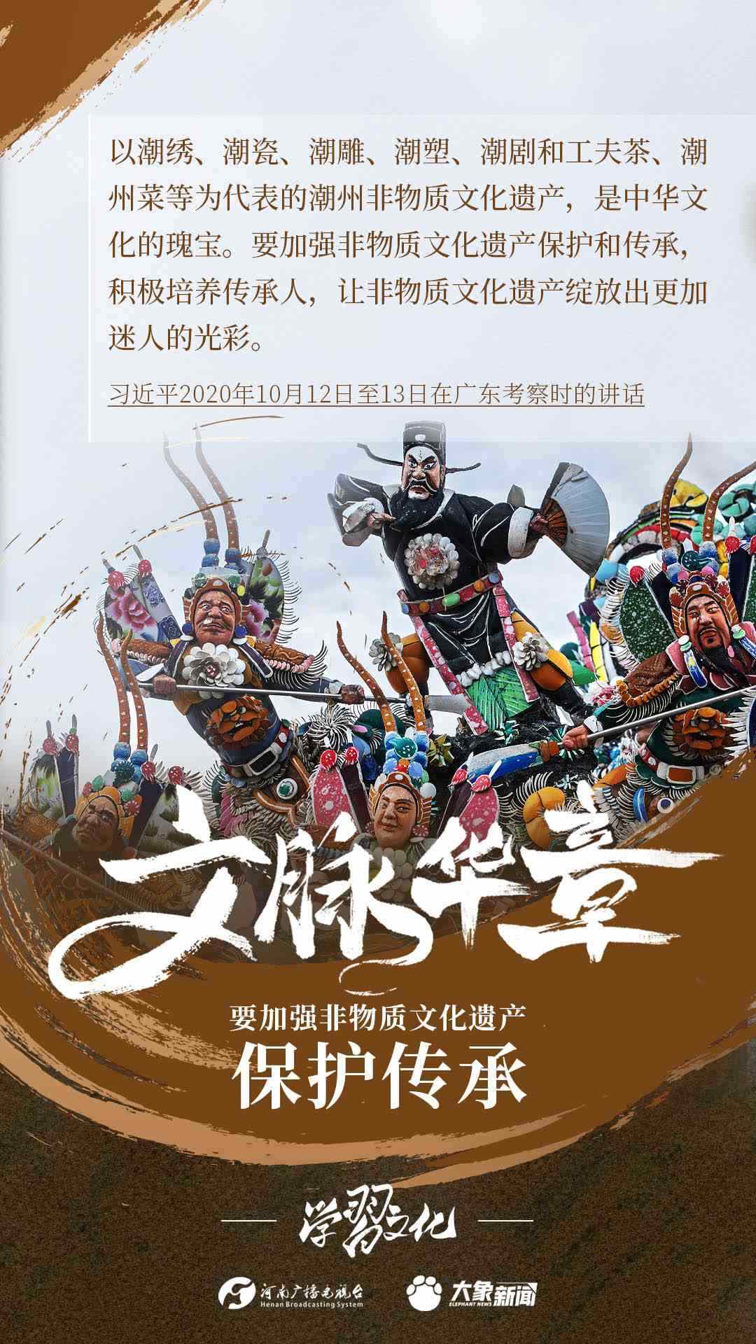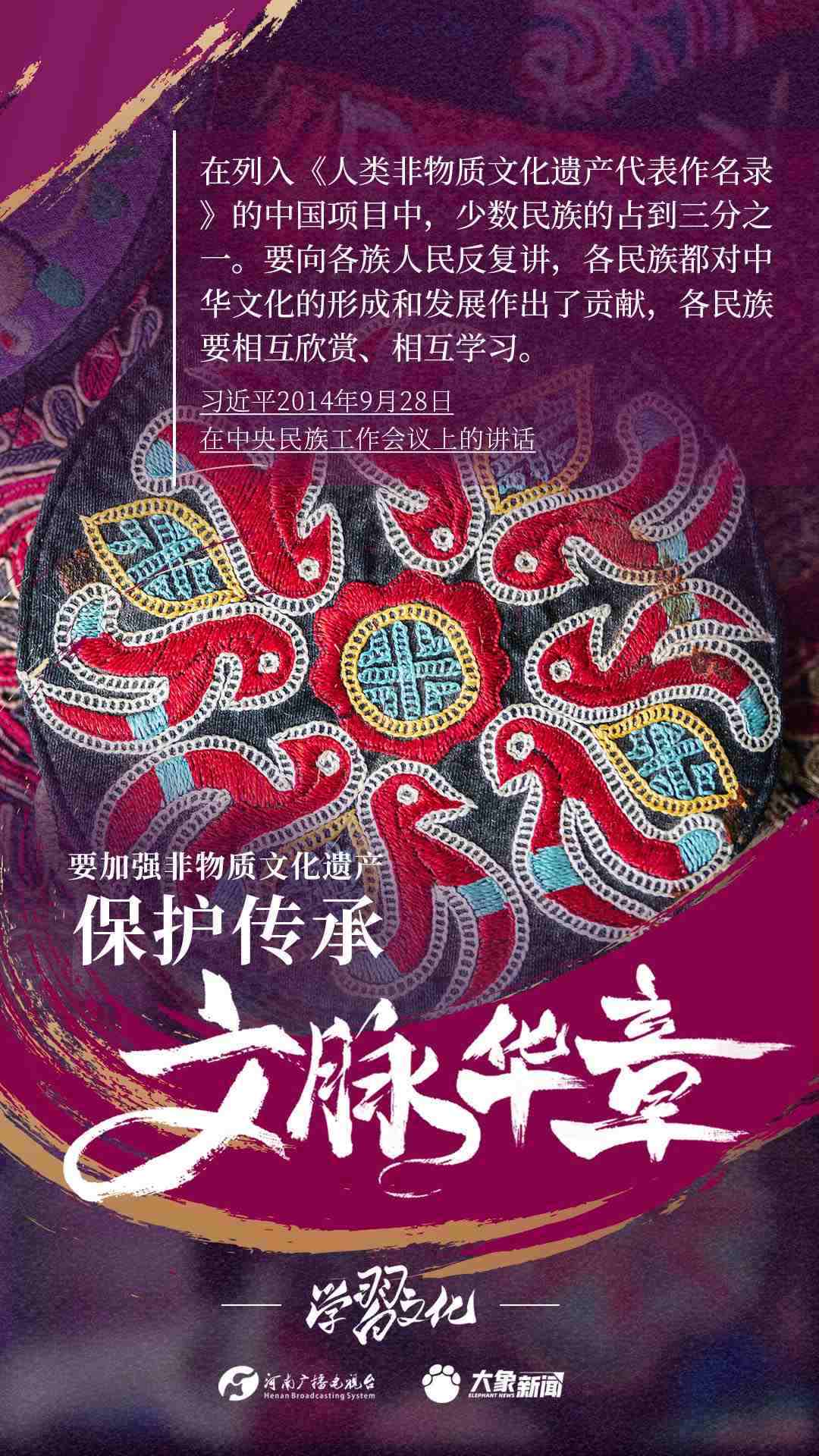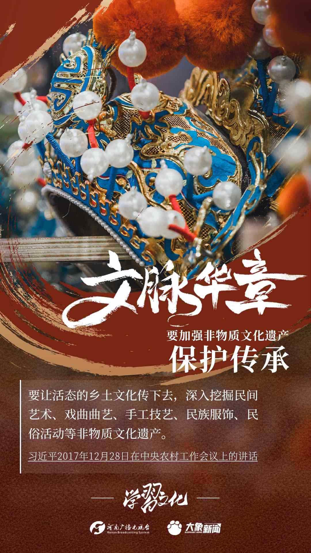 非物質(zhì)文化遺產(chǎn)是中華優(yōu)秀傳統(tǒng)文化的重要組成部分,是中華文明綿延傳承的生動見證,是我國各族人民寶貴的精神財富。習近平總書記十分關(guān)心非物質(zhì)文化遺產(chǎn)的保護傳承,多次強調(diào)“要扎實做好非物質(zhì)文化遺產(chǎn)的系統(tǒng)性保護”“培養(yǎng)好傳承人”等。大象新聞為您梳理,邀您一起學(xué)習、領(lǐng)悟、踐行。
