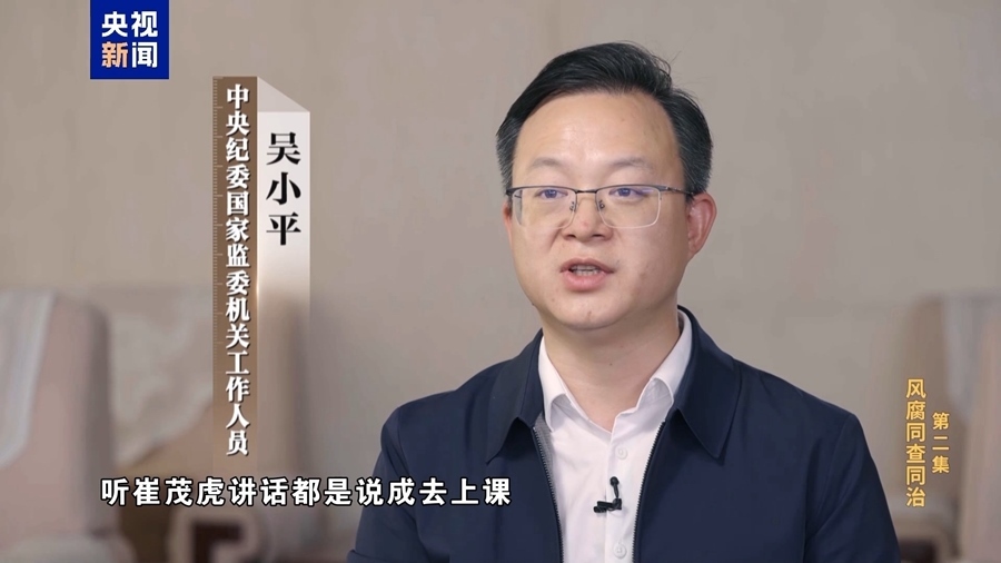中央紀委國家監(jiān)委機關工作人員 吳小平:崔茂虎特別能講,講起工作來都是長篇大論的,所以麗江當地一些干部每次去開會,聽崔茂虎講話都說成去上課,去聽崔老師講課,實際上散了會就開始到別墅里面跟商人老板在一起吃喝玩樂。