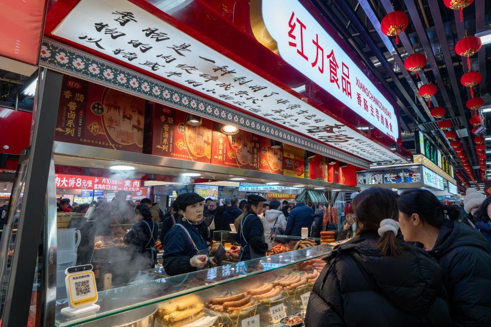 2025年1月22日,游客在沈陽中街長(zhǎng)安寺胡同小吃街游玩。