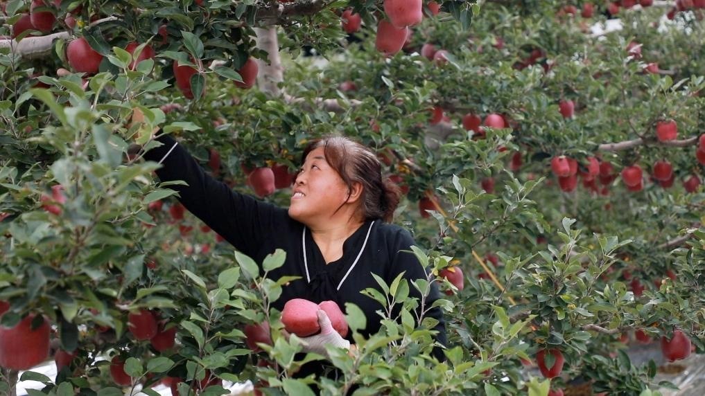 在甘肅天水,豐收時節(jié)的果實(shí)綴滿枝頭?;鸺t的蘋果,連接著鄉(xiāng)村全面振興的美好未來。