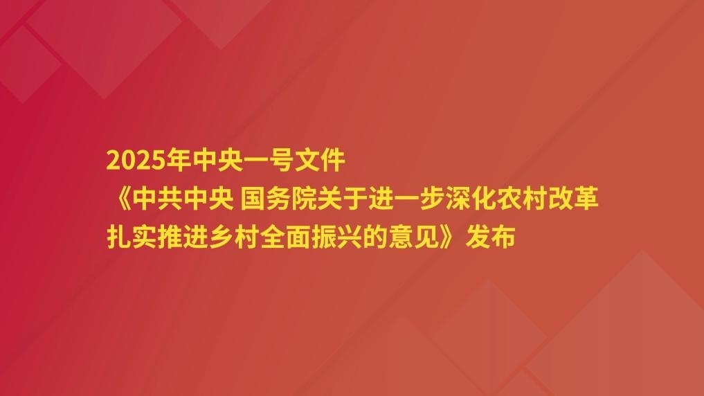 近日,2025年中央一號文件發(fā)布,這是中央一號文件連續(xù)第五年在標(biāo)題直接提到“鄉(xiāng)村振興”。