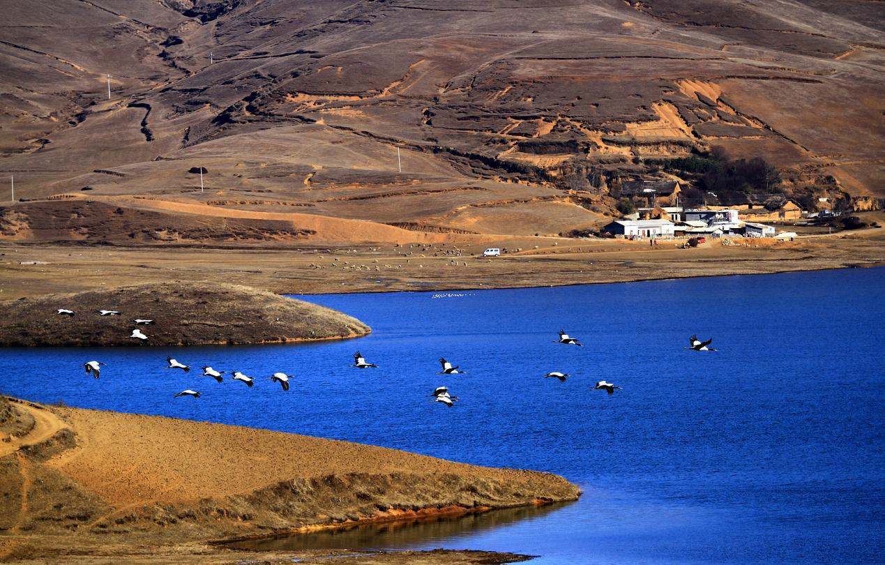 上千只黑頸鶴在這里棲息