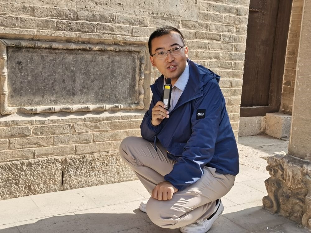 從“古建粉”到從業(yè)者,“80后”楊杰用自己的創(chuàng)業(yè)經(jīng)歷,展現(xiàn)出傳統(tǒng)文化在新時代的實踐可能。他創(chuàng)立的晉行記研學(xué)中心,聘請專業(yè)人士深入講解,為喜愛古建的游客提供“沉浸式”研學(xué)體驗。這是2023年5月20日,楊杰帶領(lǐng)游客在山西長治參觀淳化寺古跡。