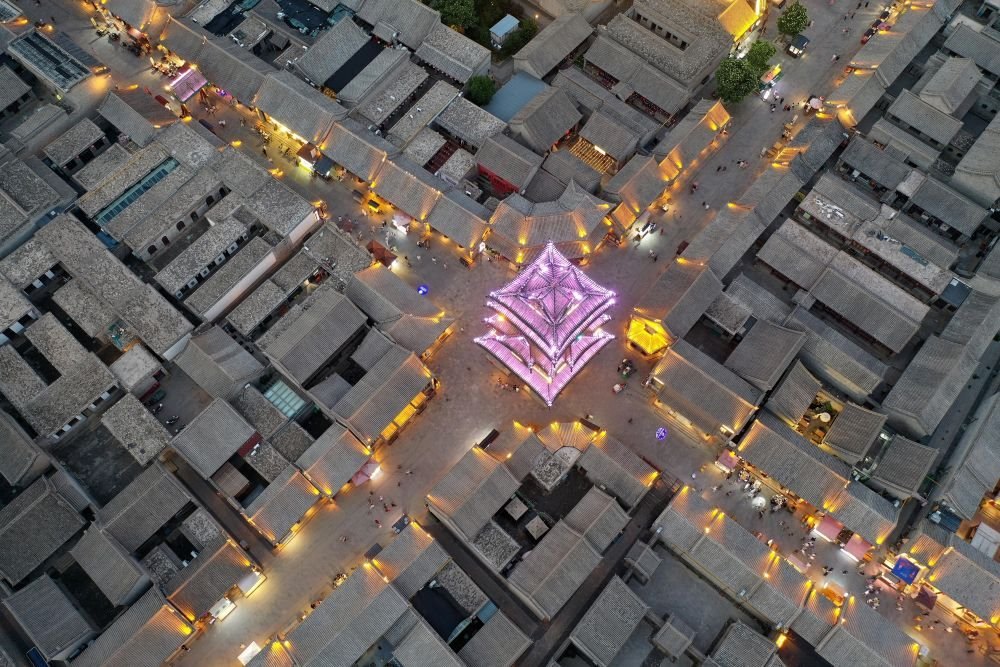 2024年7月17日,游客在太原古縣城游覽(無人機照片)。