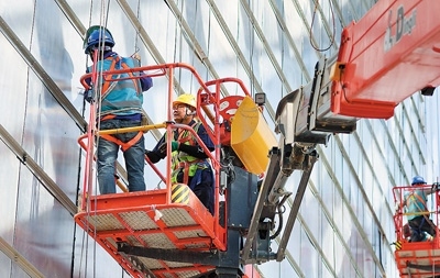 河北省石家莊美術(shù)館建設(shè)現(xiàn)場,工人們在加緊施工作業(yè)。