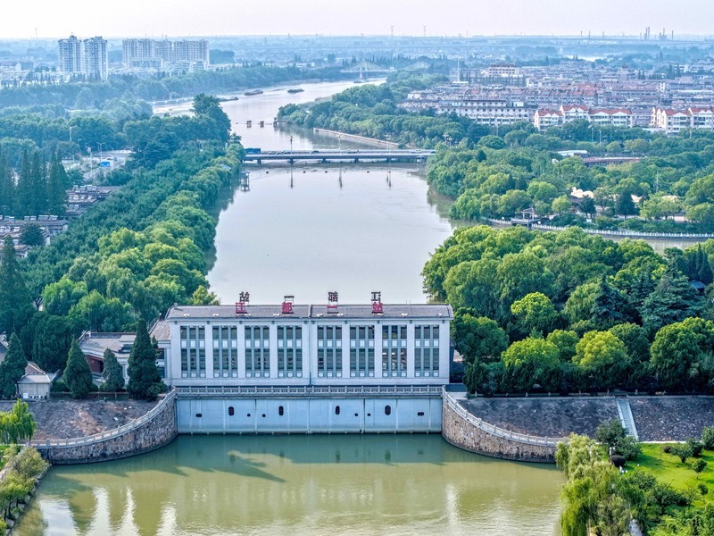 這是位于江蘇省揚(yáng)州市江都區(qū)的南水北調(diào)東線(xiàn)源頭江都水利樞紐一站(7月6日攝,無(wú)人機(jī)照片)。
