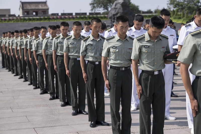 7月7日,部隊官兵代表在現(xiàn)場默哀。