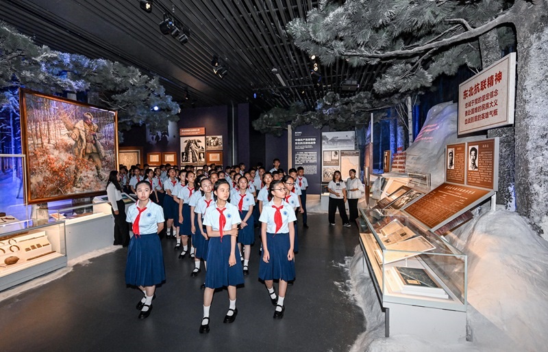 7月7日,北京市第十二中學(xué)的少先隊員在中國人民抗日戰(zhàn)爭紀(jì)念館向抗戰(zhàn)英烈獻(xiàn)花。