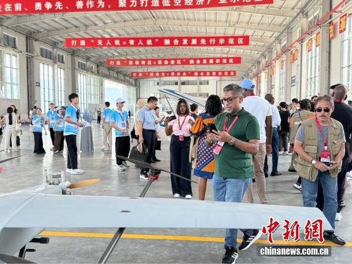 7月16日,在江西省贛州市南康區(qū)低空經濟產業(yè)園,外媒記者參觀無人機。中新網 黃方 攝