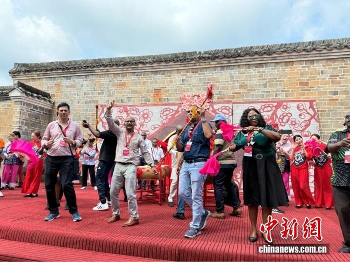 中新網7月21日電(記者 黃方) 鼓聲“咚咚咚”在江西贛州龍南市關西新圍響起,非洲記者大會秘書長威廉·奧洛首次嘗試舞龍。他興奮地搖動著龍頭,跟隨節(jié)奏躍動,忍不住連聲贊嘆:“這太有節(jié)奏感了!”