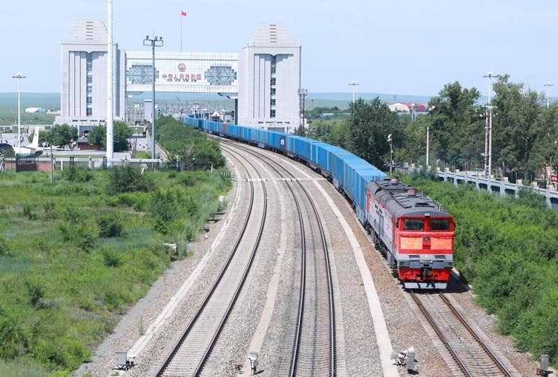 7月24日,一列滿載貨物的回程中歐班列通過(guò)國(guó)門駛?cè)胫袊?guó)鐵路哈爾濱局集團(tuán)有限公司滿洲里站。