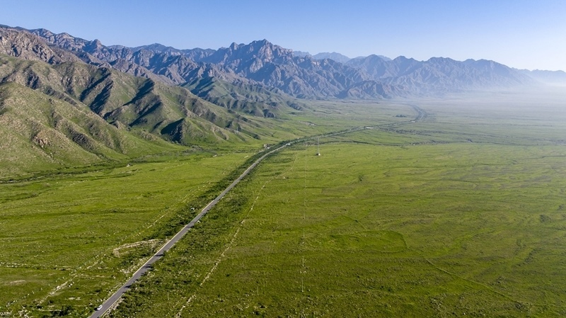 賀蘭山下草木茂盛(7月29日攝,無(wú)人機(jī)照片)。