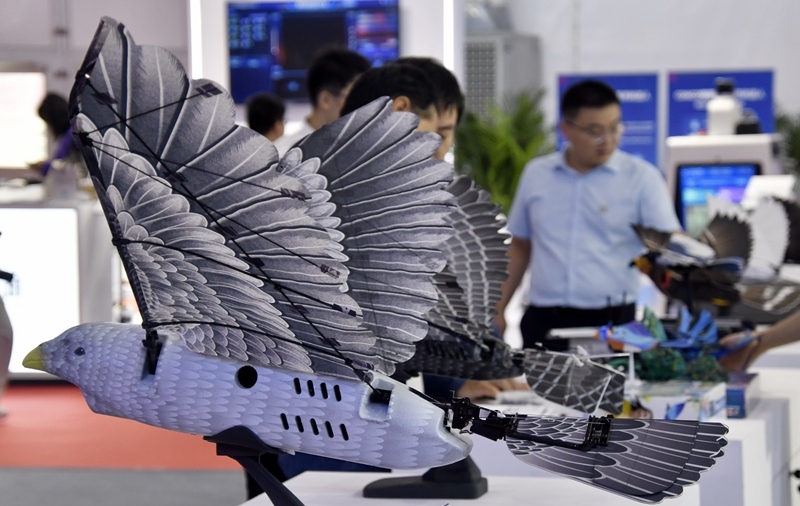 2025世界機(jī)器人大會(huì)上展示的仿生機(jī)器鳥(8月8日攝)。