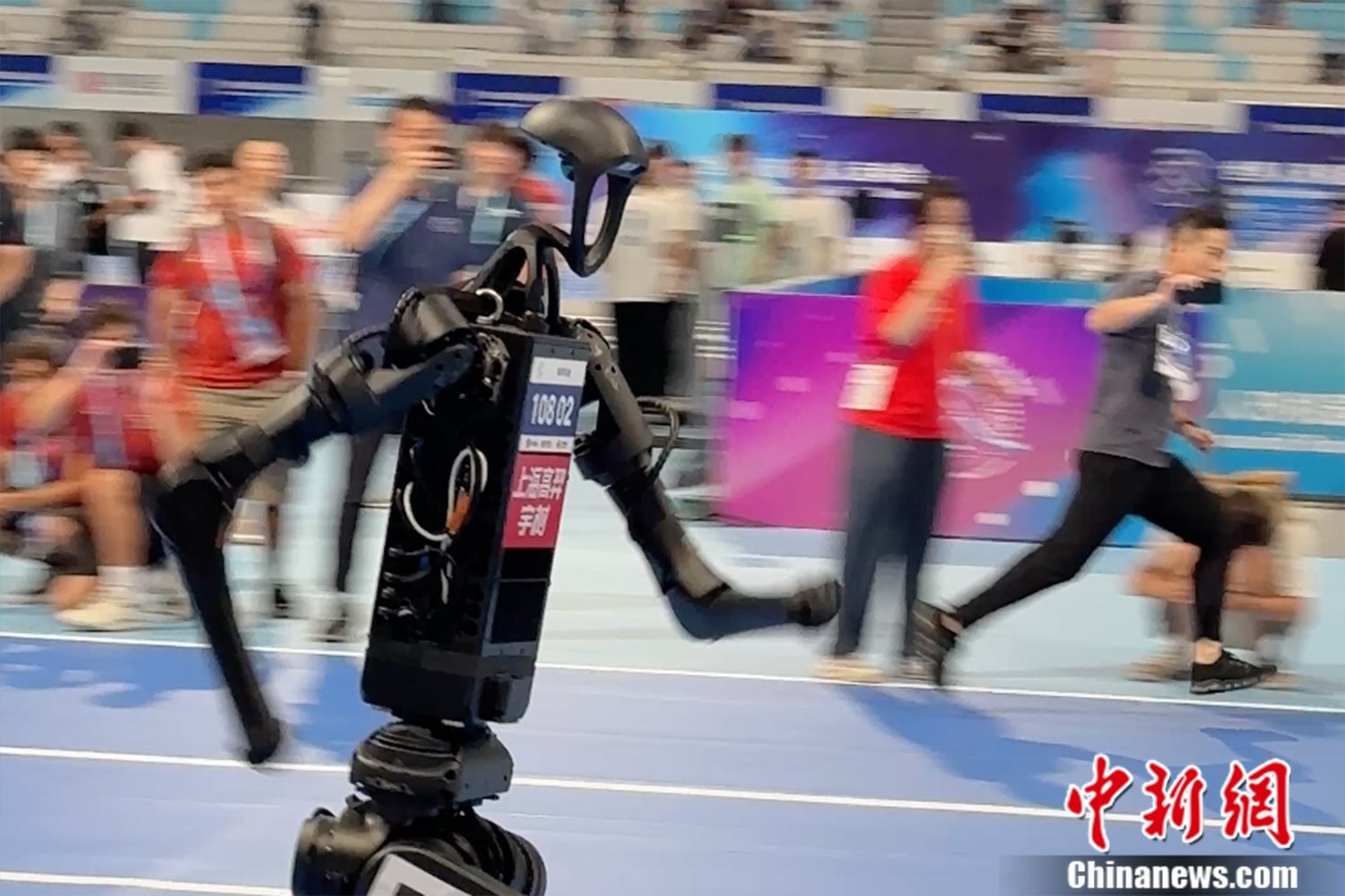 奔跑中的人形機器人。記者 吳家駒 攝