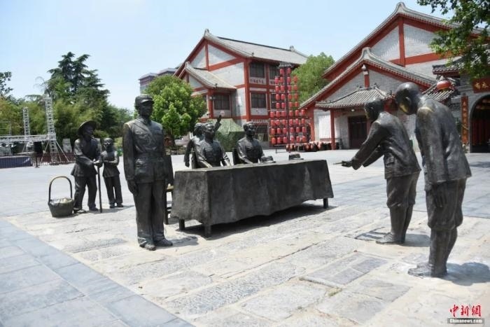 漯河市第二中學內復原日軍受降儀式現場雕像。王宇 攝
