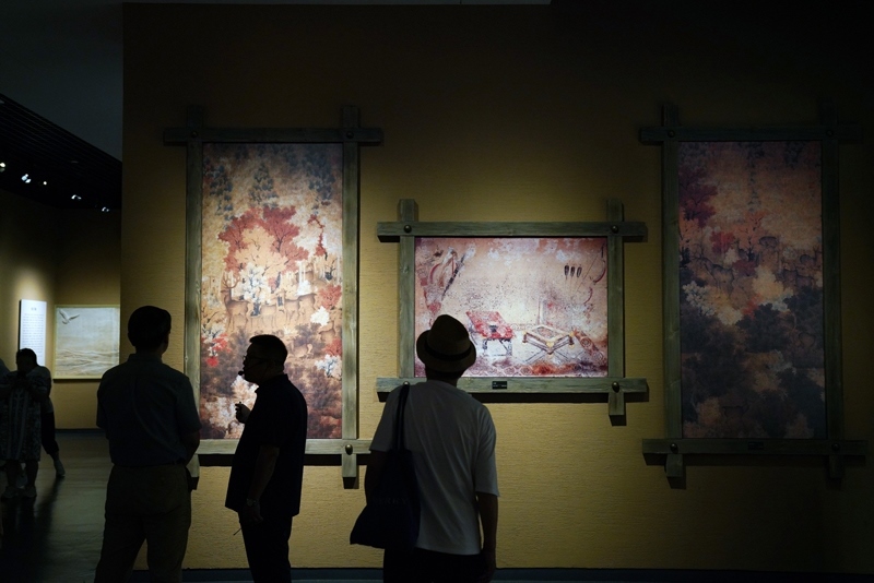 人們?cè)谖挥诠枮I市阿城區(qū)的金上京歷史博物館參觀(8月5日攝)。