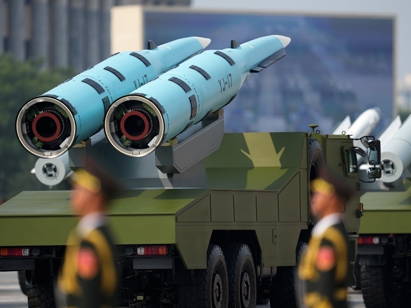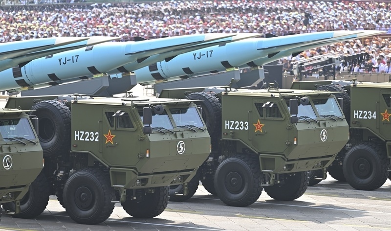 9月3日,紀念中國人民抗日戰(zhàn)爭暨世界反法西斯戰(zhàn)爭勝利80周年大會在北京隆重舉行。這是反艦導彈方隊接受檢閱。
