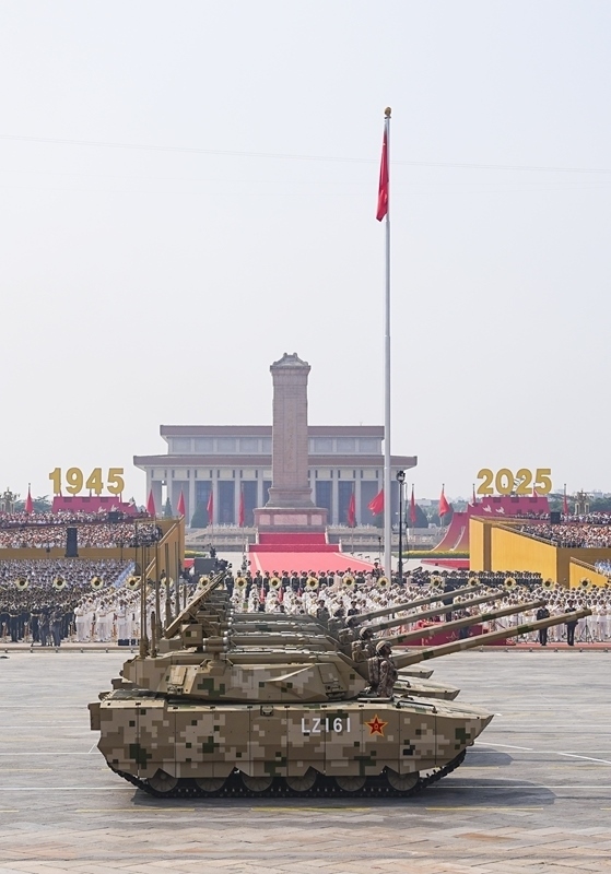 9月3日,紀念中國人民抗日戰(zhàn)爭暨世界反法西斯戰(zhàn)爭勝利80周年大會在北京隆重舉行。這是裝備方隊通過天安門廣場。