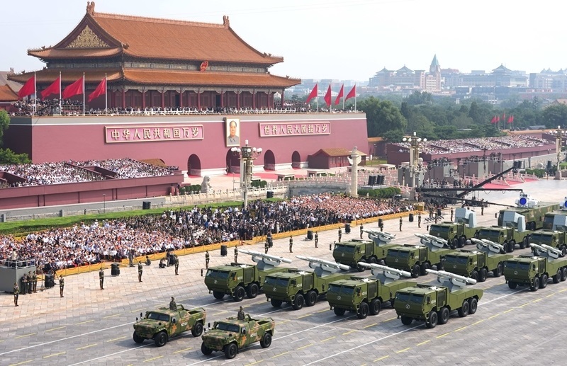 9月3日,紀念中國人民抗日戰(zhàn)爭暨世界反法西斯戰(zhàn)爭勝利80周年大會在北京隆重舉行。這是裝備方隊接受檢閱。