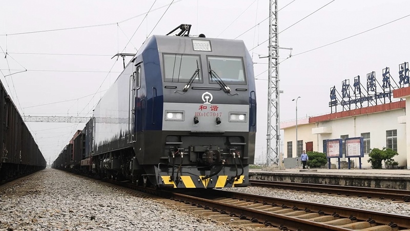 9月4日,一列火車駛進(jìn)欽州港東站轉(zhuǎn)運(yùn)集裝箱。