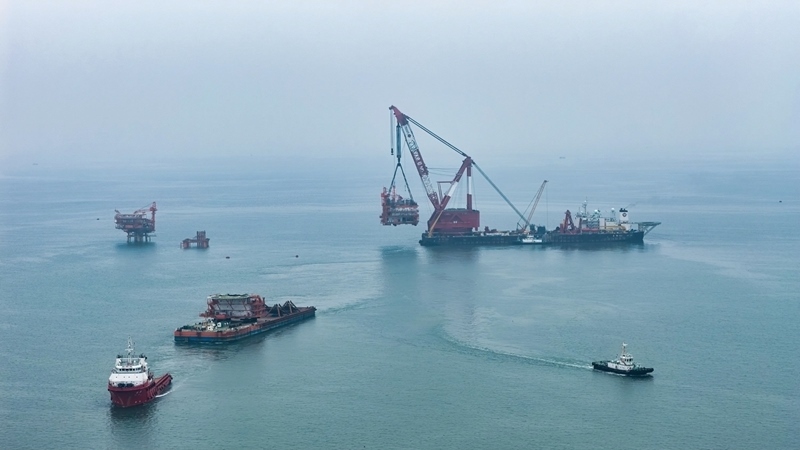 9月8日,隨著重達(dá)4700噸的油氣平臺上部組塊在渤海南部海域精準(zhǔn)就位,墾利6-1油田10-1北區(qū)塊Ⅱ期開發(fā)項目建設(shè)工作取得重要進展,渤海億噸級油田又一油氣平臺完成海上安裝。