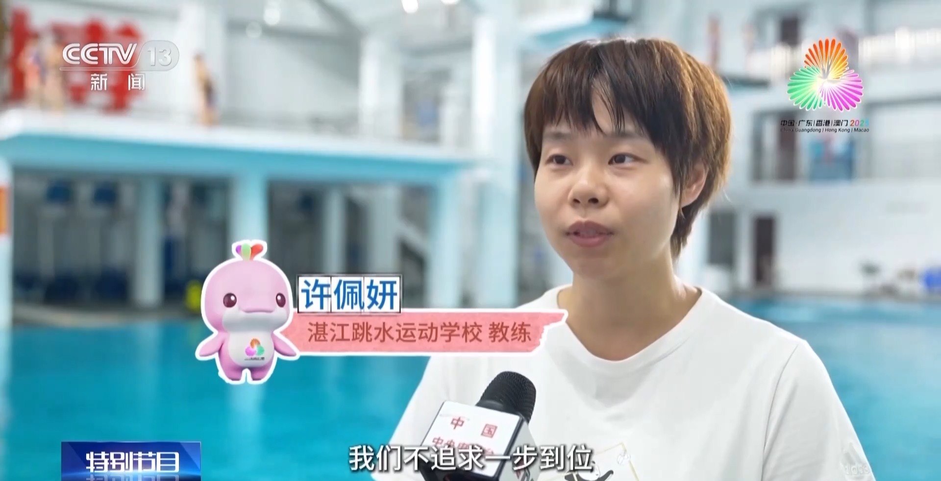 湛江跳水運動學校教練 許佩妍:我們不追求一步到位,因為我們很多孩子都是海邊長大的,喜歡追波逐浪,那么他們來了以后,我們先讓他們愛上水,愛上跳躍,正是這份興趣成為他們成長最大的基礎。