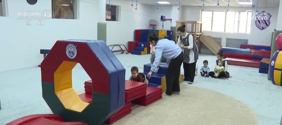 在遼寧沈陽這家托育中心,10多名1至3歲的寶寶正在早教老師帶領(lǐng)下做感統(tǒng)游戲。不滿兩歲的軒軒是托小班的“進步之星”。2024年7月入托時,他還是個見到陌生人就躲到老師身后的“害羞寶寶”,如今他不僅能主動向小伙伴揮手打招呼,還會主動分享玩具。