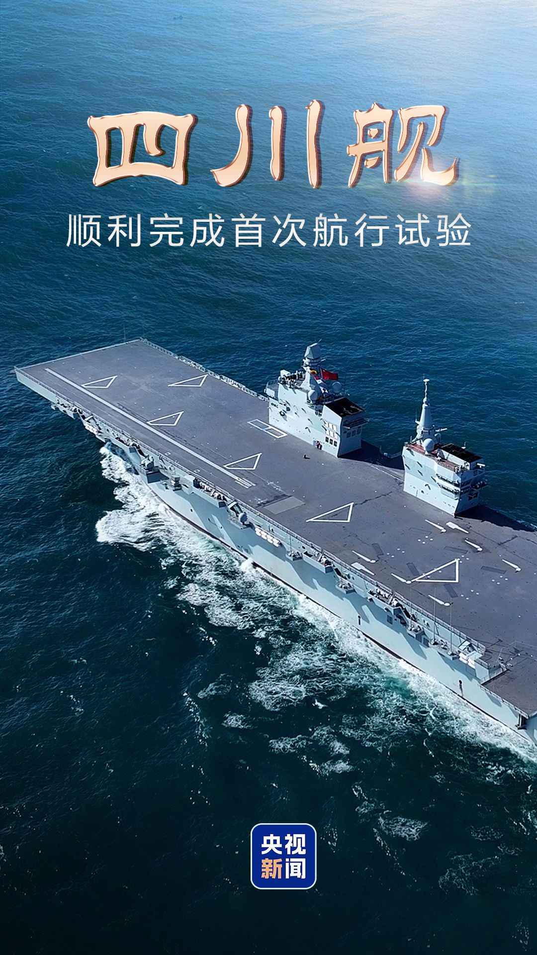 總臺央視記者 李笑琪:伴隨著溫暖的陽光和徐徐的微風,海軍四川艦順利完成首次航行試驗任務,緩緩駛向碼頭。四川艦滿載排水量4萬余噸,它獨有的雙艦島設計也讓這艘艦艇更容易被識別。四川艦還創(chuàng)新應用電磁彈射和阻攔技術,可搭載固定翼飛機、直升機、兩棲裝備等。這次試航期間,對四川艦動力、電力等系統(tǒng)設備進行了一系列測試,達到了預期效果。