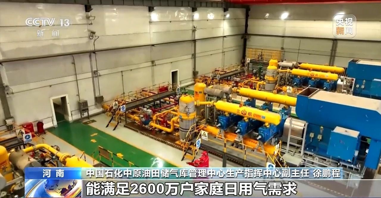中國石化中原油田儲(chǔ)氣庫管理中心生產(chǎn)指揮中心副主任 徐鵬程:入冬前,中原油田儲(chǔ)氣庫群完成注氣儲(chǔ)備9.4億立方米,較去年多儲(chǔ)備1.2億立方米,達(dá)到歷史最高水平。在用氣高峰期,能滿足2600萬戶家庭的日用氣需求。