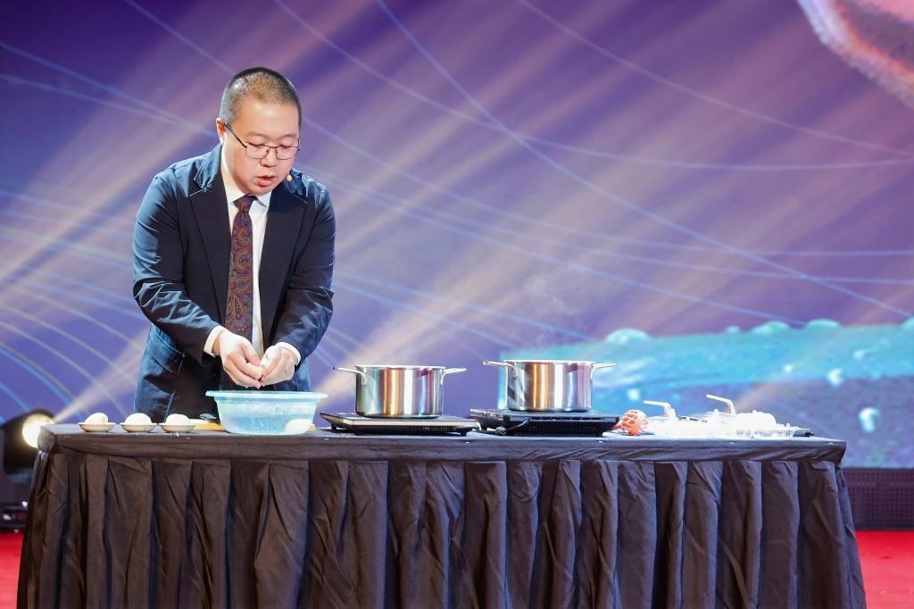 11月22日拍攝的為觀眾展示煮雞蛋和蒸雞蛋化學(xué)原理的實驗。新華社發(fā)