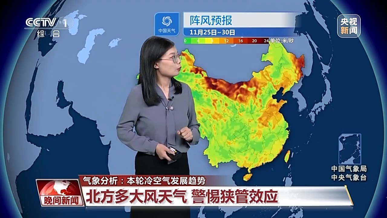 冷空氣帶來(lái)的大風(fēng)比較頻繁,尤其是25日、26日以及29日前后,從西北到華北黃淮會(huì)陸續(xù)刮起5至7級(jí)的風(fēng),陣風(fēng)可以達(dá)到8到9級(jí),尤其是會(huì)出現(xiàn)狹管效應(yīng)的區(qū)域,風(fēng)力會(huì)更大。