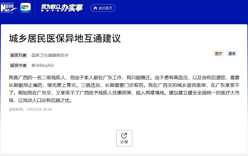 從網(wǎng)友反映的情況看,更多是對現(xiàn)行的異地就醫(yī)待遇保障政策不了解導(dǎo)致??紤]到這并非個例,因此就相關(guān)政策進行解讀十分必要。