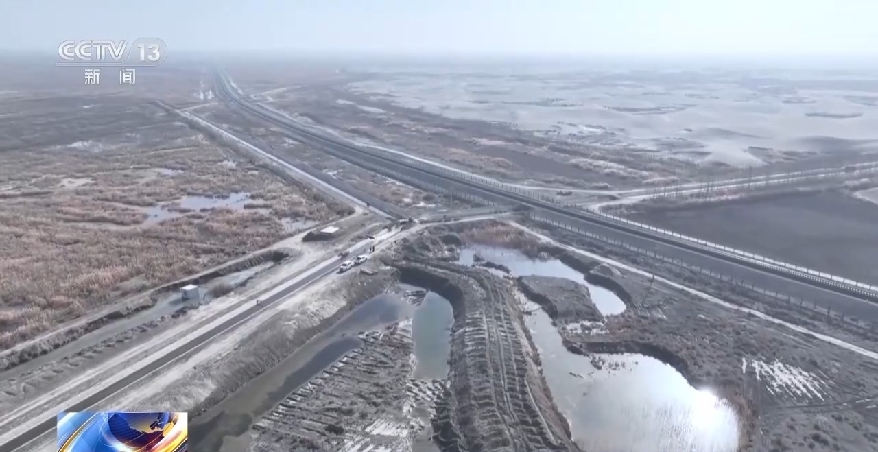 中國科學(xué)院新疆生態(tài)與地理研究所策勒沙漠研究站站長 曾凡江:昆侖山下來有一股水,自然形成的一條河,我們就巧妙地把這個(gè)河利用起來了,雖然水量不是那么大,但是它常年那種沖刷,寬度還是有的,這條河正好是跟沙漠前沿的過來的沙子一部分就沉積在沙河里面。