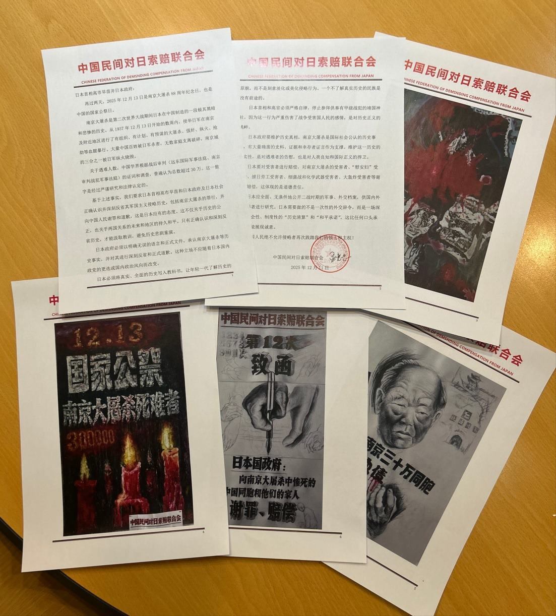 中新網(wǎng)12月13日電 (田野青)南京大屠殺88周年之際,中國(guó)民間對(duì)日索賠聯(lián)合會(huì)通過(guò)日本駐華大使館,致信日本政府及首相高市早苗,要求就南京大屠殺的罪行向中國(guó)人民謝罪并賠償。