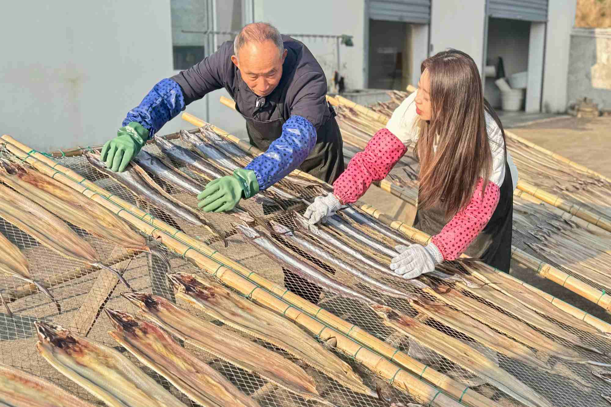 該廠生產(chǎn)的鰻魚、馬鮫魚、魷魚、黃魚、蝦等鲞類產(chǎn)品,在北京、上海、南京等城市供不應(yīng)求,年銷售額超過500萬元。以前靠鹽和陽光保存海鮮的老手藝,現(xiàn)在還融入了智能化烘干、真空包裝等現(xiàn)代技術(shù),魚鲞保質(zhì)期延長至半年以上,通過電商平臺(tái)銷往全國各地,從“農(nóng)家特產(chǎn)”升級(jí)為“網(wǎng)紅爆款”。