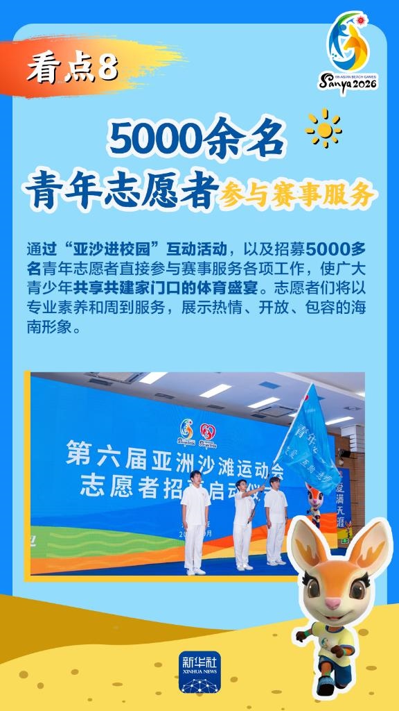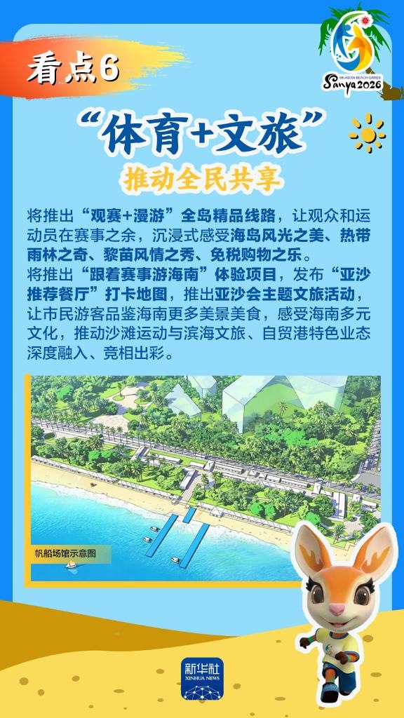 第六屆亞洲沙灘運(yùn)動(dòng)會(huì)(以下簡(jiǎn)稱“亞沙會(huì)”)將于2026年4月22日至30日在海南三亞舉行,賽事歷時(shí)9天。作為海南自由貿(mào)易港封關(guān)運(yùn)作后迎來(lái)的首個(gè)國(guó)際大型綜合性體育盛事,亞沙會(huì)都有哪些看點(diǎn)?為何值得期待?國(guó)新辦12日發(fā)布會(huì)做了詳細(xì)介紹,一起來(lái)看。