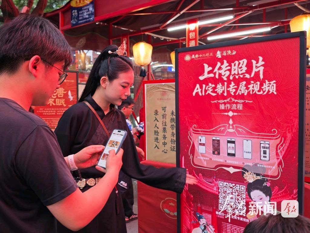 游客在長安十二時辰主題街區(qū)體驗AI產(chǎn)品。(資料圖)